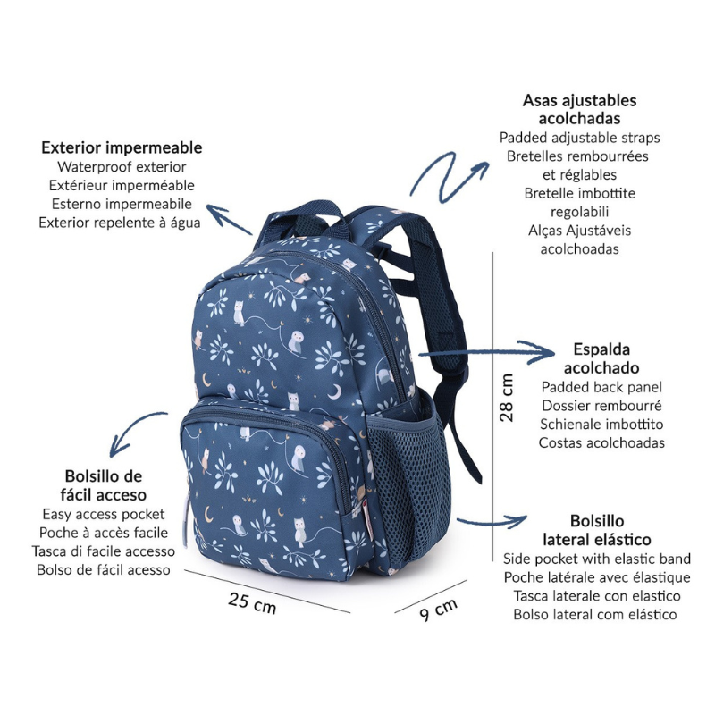 Torna o regresso às aulas mais divertido com esta mochila Tutete com estampado de elementos da Floresta! Ideal para os mais pequenos, com alças acolchoadas, bolso para garrafa e espaço para muda de roupa.