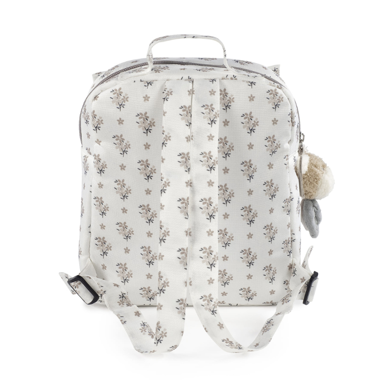 Mochila infantil com padrão floral, leve e confortável. Ideal para creche e passeios, com alças ajustáveis e tamanho perfeito para crianças. Dimensões: 25 x 23 x 8,5 cm