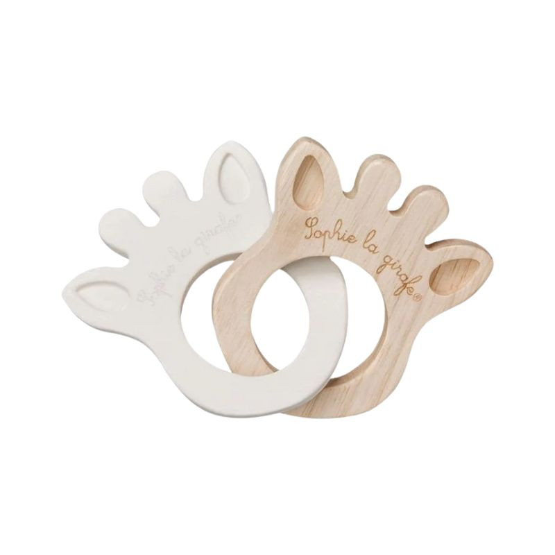 Sophie La Girafe Anel de Dentição Silicone e Madeira com diferentes níveis de dureza, um produto eco-friendly, pensado especialmente para aliviar o desconforto da dentição do bebé.