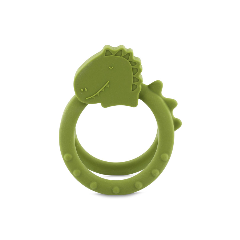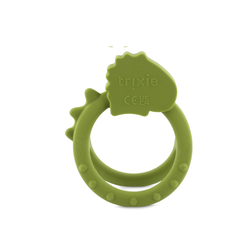 O Mordedor Sensorial Mr. Dino da TRIXIE foi feito para os dias de dentição – e para os meses que os precedem. O silicone é macio, as texturas são variadas, o formato é fácil de agarrar. E quando o bebé pousa, o dinossauro balança – um convite para pegar de novo.
