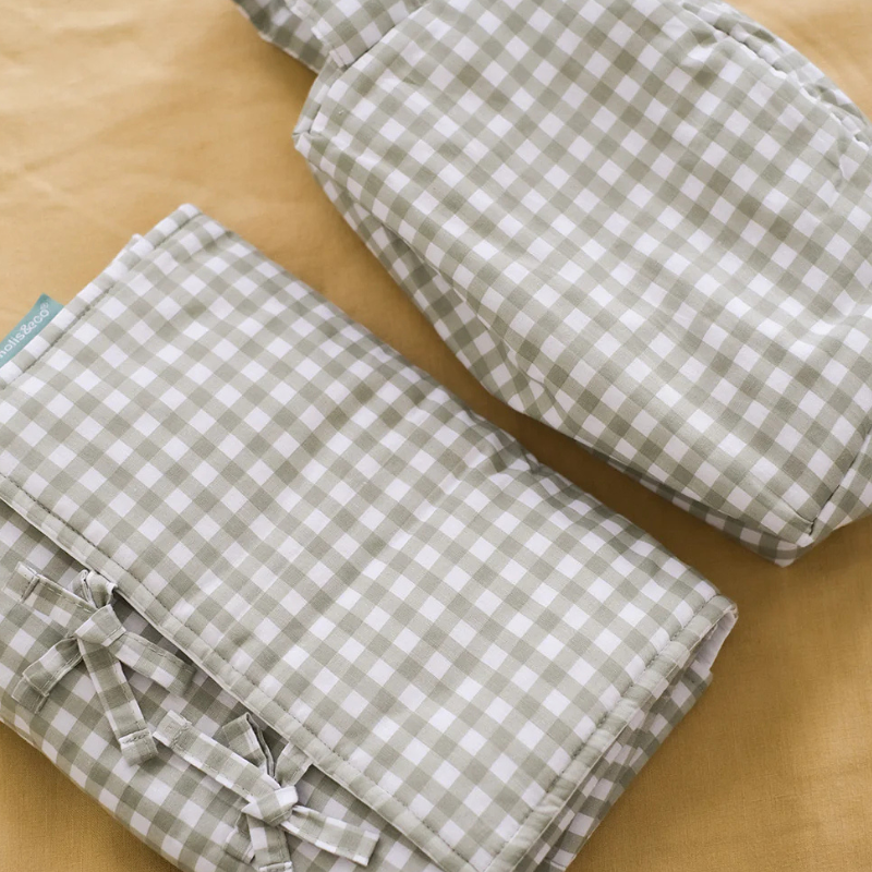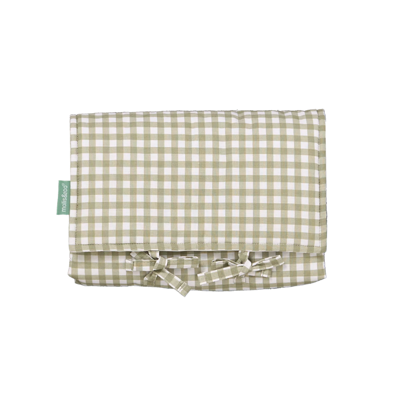 A mudança de fraldas mais confortável e higiénica, onde quer que vás! Muda portátil com tecido impermeável, interior acolchoado e exterior fácil de limpar. Leve, dobrável e com fecho em atacadores. Em algodão 100% de origem responsável (Better Cotton). Leva-a na mala de fraldas para casa, viagens ou passeios.