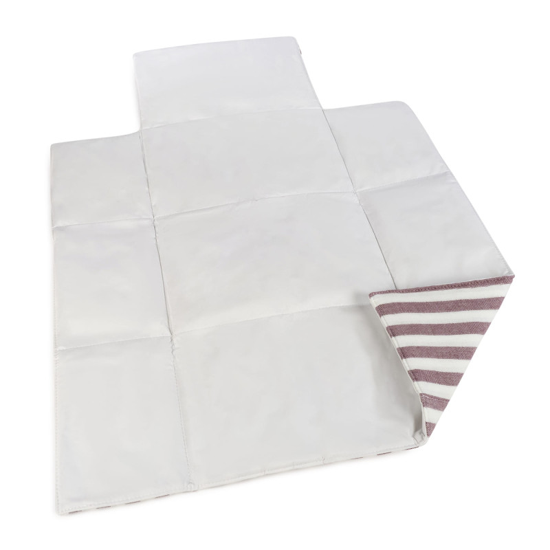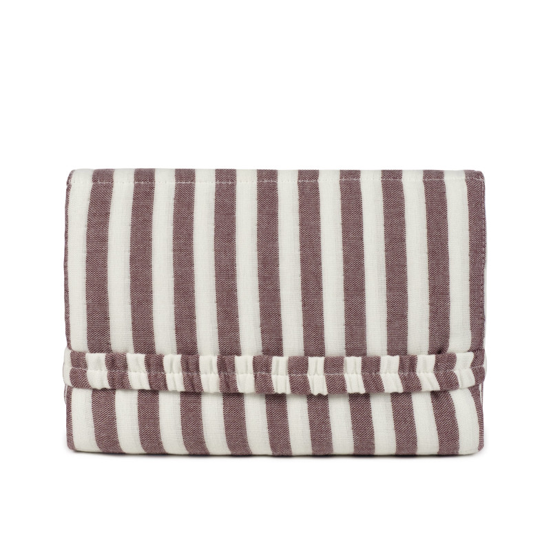 Muda-fraldas portátil com padrão às riscas, interior acolchoado e impermeável. Perfeito para o dia a dia, viagens ou passeios, sempre pronto quando precisas. Medidas: 50 x 70 cm.
