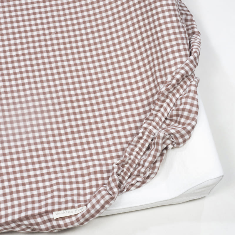 Muda fraldas Walking Mum Praliné Vichy Moka com capa impermeável extraível. Espuma viscoelástica, base antiderrapante. Inclui muda pequena adicional. Design aos quadrados Vichy Moka.