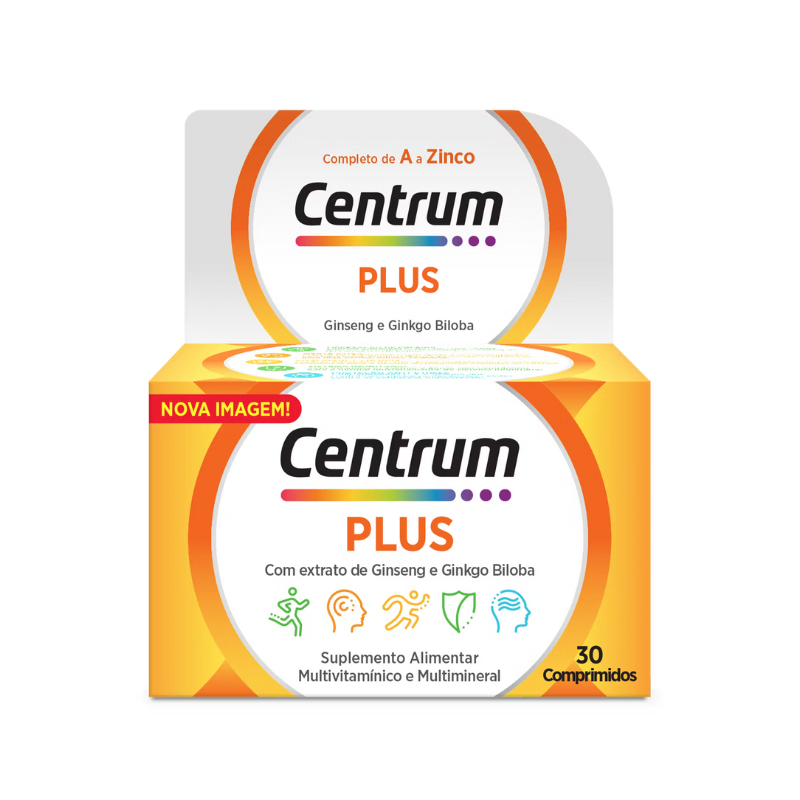 Centrum Plus Ginseng & Ginkgo é um suplemento completo com 13 vitaminas, 8 minerais, Ginseng e Ginkgo Biloba. Ajuda a manter a energia, foco mental, imunidade e proteção celular em adultos ativos.