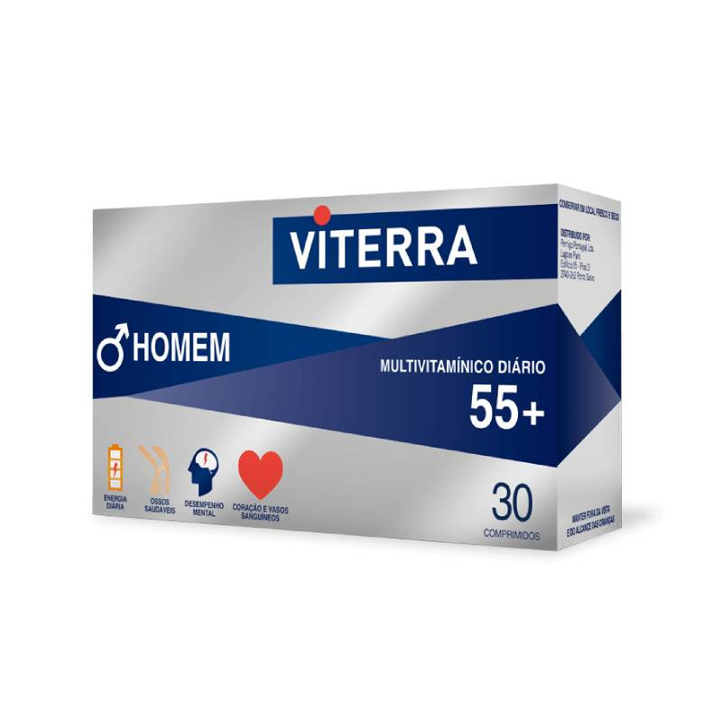 O multivitamínico diário Viterra Homem 55+ foi desenvolvido especialmente para os homens com mais de 55 anos, para otimizar o bem-estar e vitalidade e fornecer todos os benefícios mais importantes nesta fase da vida.