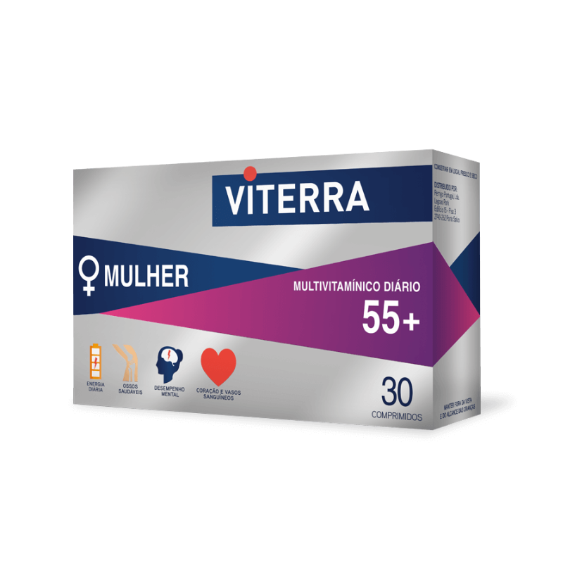 Viterra Mulher 55+ é um multivitamínico diário cuja fórmula foi desenvolvida especialmente para as mulheres com mais de 55 anos, para otimizar o bem-estar e equilíbrio nesta fase tão especial e crucial do cuidado pós-menopausa.