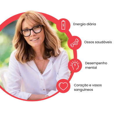 - Contém uma associação de vitaminas e minerais em quantidades adequadas às necessidades nutricionais de mulheres com mais de 55 anos, sem provocar aumento de peso.