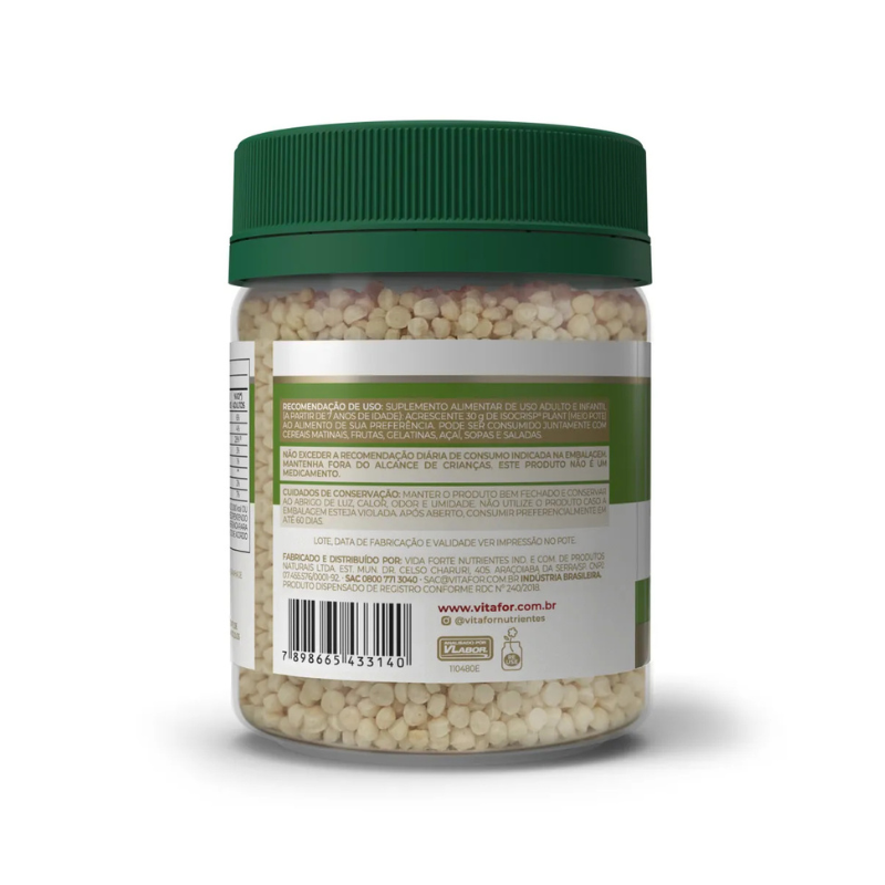 Vitafor Isocrisp é um suplemento em grânulos, fonte de proteína de ervilha, que auxilia na formação de músculos e ossos.