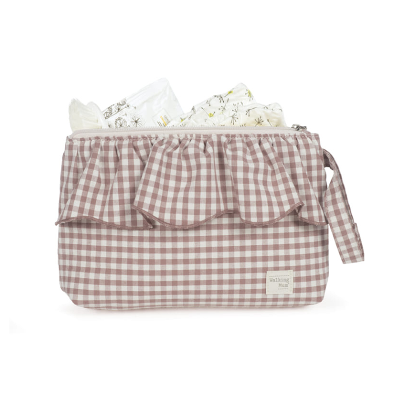 Necessaire bebé Walking Mum Praliné, prático e seguro. Perfeito para organizar produtos de higiene e levar sempre à mão. Dimensões: 26 x 18 x 2 cm.