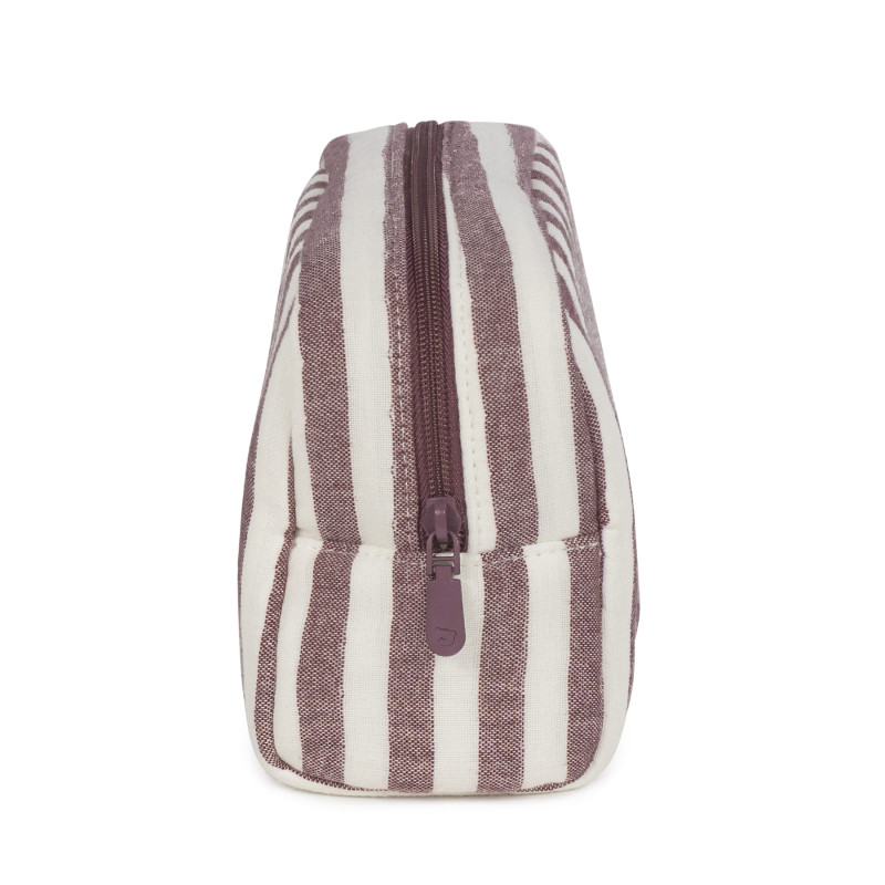 Necessaire prático e compacto para os essenciais do bebé, com design delicado às riscas. Medidas: 23 x 17 x 10 cm. Material: 100% algodão / interior 100% PVC.