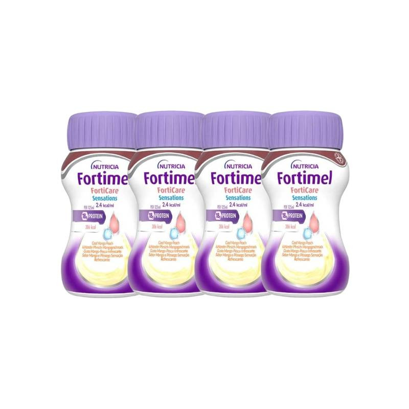 Fortimel Forticare Sensations Pêssego/Manga 4x125ml é uma fórmula hipercalórica e hiperproteica especialmente desenvolvida com ácidos gordos ómega 3 e vitamina D para a gestão nutricional da malnutrição do doente oncológico.