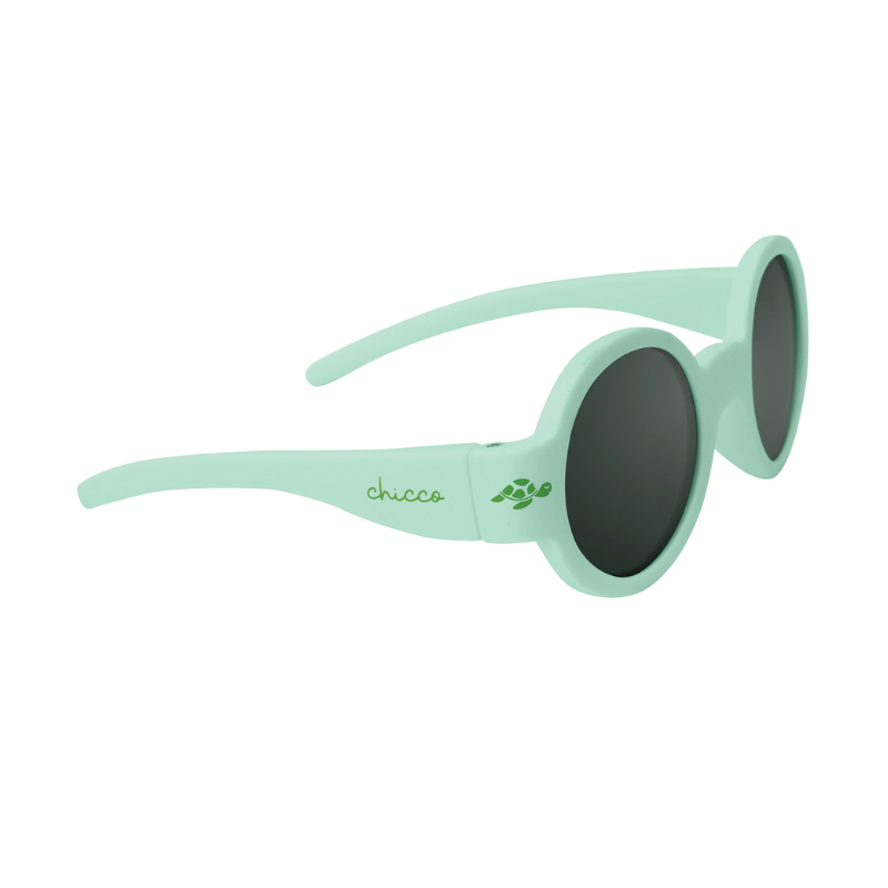 Os Óculos de Sol Verdes +24M da Chicco foram fabricados com lentes de policarbonato, resistentes a riscos e de alta durabilidade, garantindo maior segurança para o uso diário das crianças a partir dos 2 anos.
