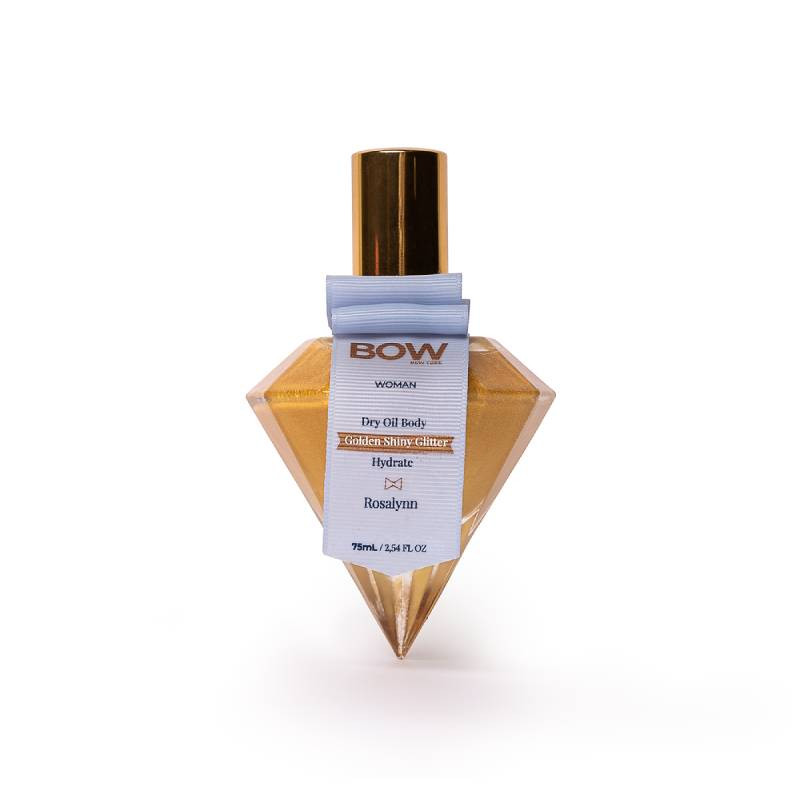 Bow Woman Rosalynn Óleo Seco com Glitter 75ml hidrata, repara e suaviza a pele.