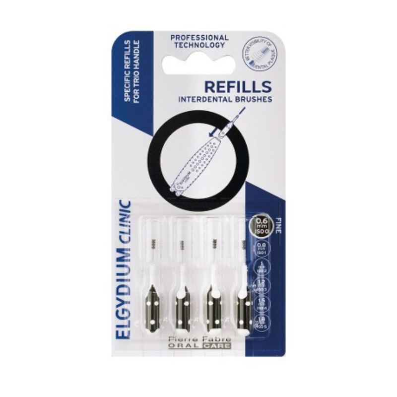 As recargas para escovilhões Elgydium Clinic limpam eficazmente os espaços interdentários, ajudando a reduzir a placa bacteriana e prevenindo cáries e doenças gengivais.