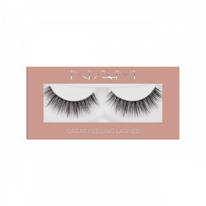 NAM Cosmetics Great Feeling Eyelashes é uma embalagem composta por pestanas postiças confortáveis, leves e com um acabamento indetectável.