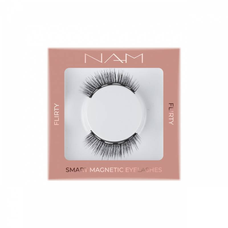 NAM Cosmetics False Lashes Flirty é uma embalagem composta por um par de pestanas postiças magnéticas efeito "flirty". Adaptam-se a todas as formas de olhos e proporciona um conforto ótimo.