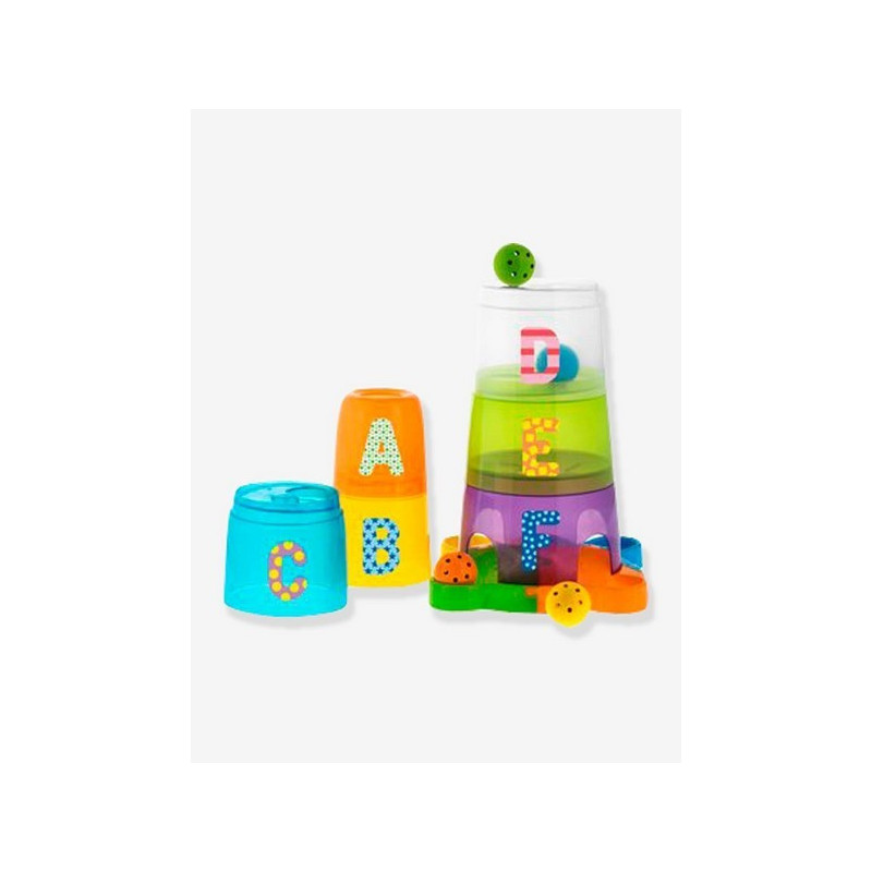 4 cubos coloridos com atividades manuais, empilhamento e associação de imagens. Desenvolve habilidades motoras e lógicas dos 10 aos 36 meses. Inspirado no método Montessori.