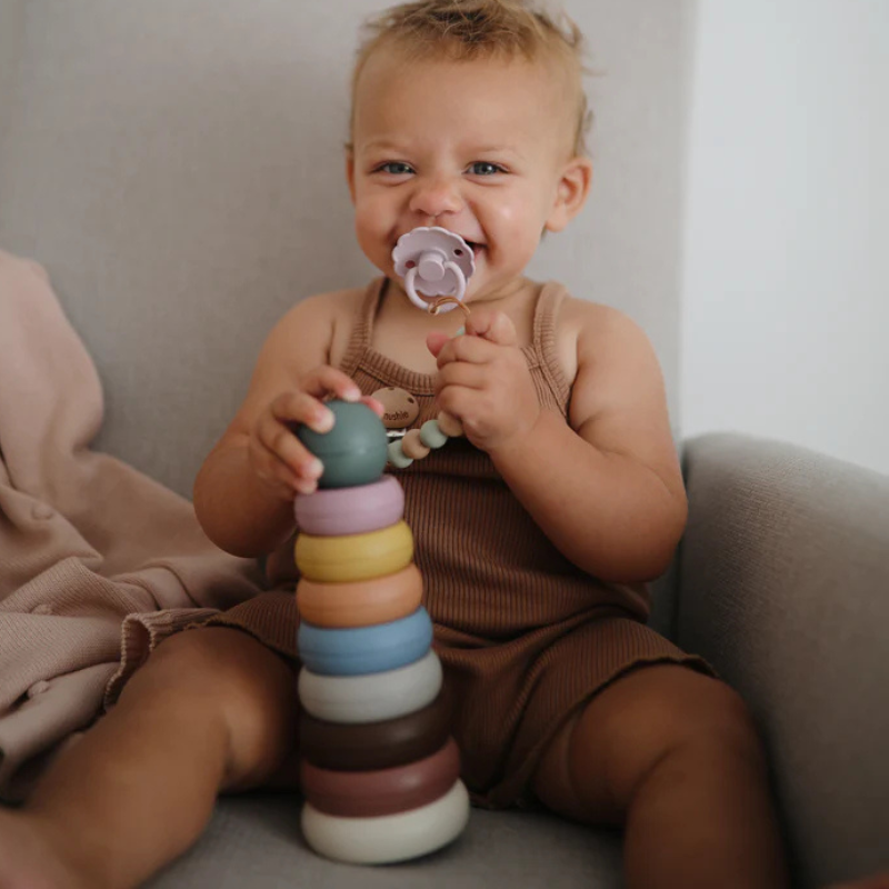 Estimula a curiosidade e as primeiras descobertas do teu bebé com um brinquedo que é tanto um clássico atemporal como um acessório de design. O Jogo de Aneis para Empilhar da Mushie, da coleção Danish Hygge, foi concebido para oferecer muito mais do que diversão. Cada anel de cores suaves e textura única desafia a perceção e a habilidade do teu pequeno, ajudando-o a desenvolver a sua coordenação motora fina e a compreensão de tamanhos e sequências. É o primeiro puzzle do teu bebé, num estilo que se integra perfeitamente na decoração da tua casa.