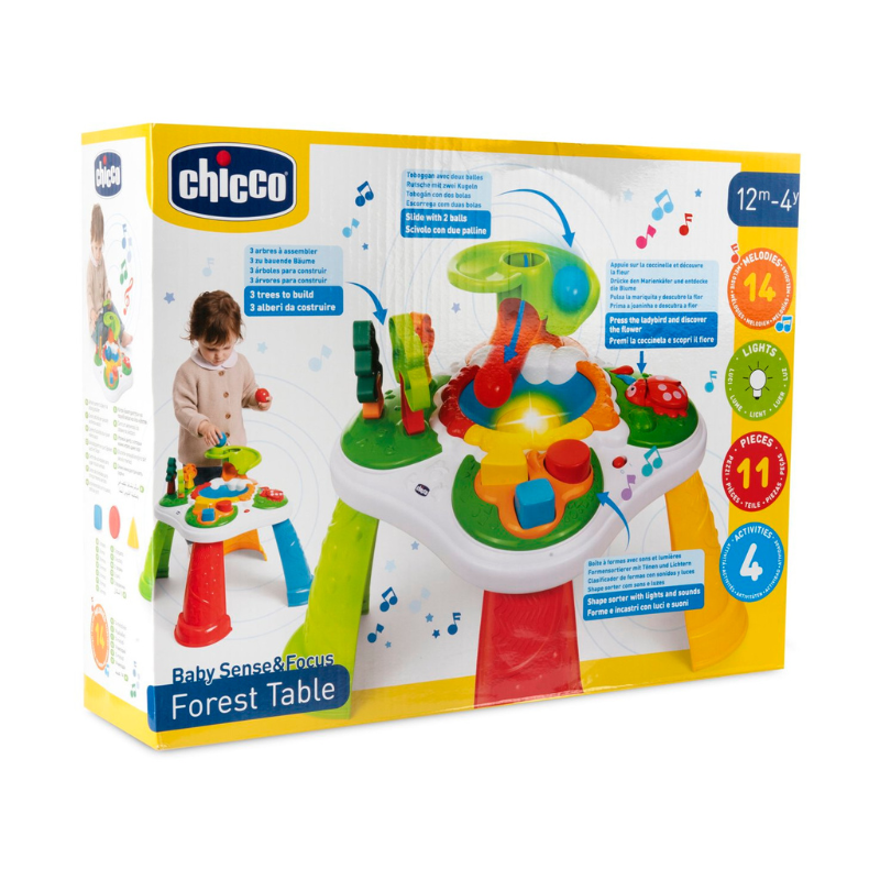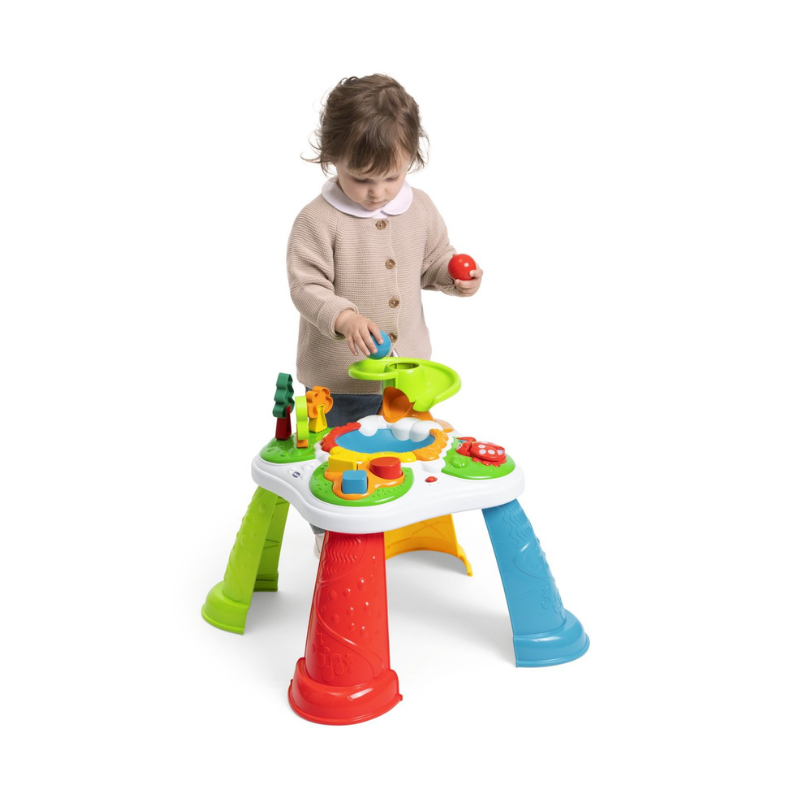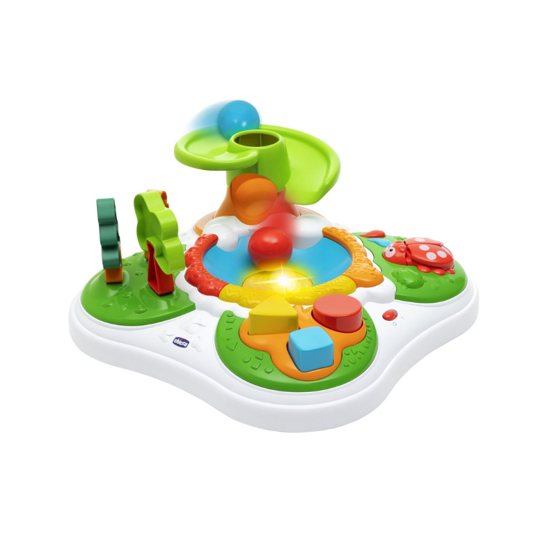 Apresentamos a Mesa Sensorial Floresta da Chicco, um centro de atividades eletrónico e interativo concebido para acompanhar o desenvolvimento do Teu filho desde os 10 até aos 36 meses. Com 4 áreas de jogo distintas e mais de 10 sons e melodias, esta mesa transforma-se num universo de descobertas que estimula a motricidade fina, o raciocínio lógico e a criatividade, sempre através da brincadeira.