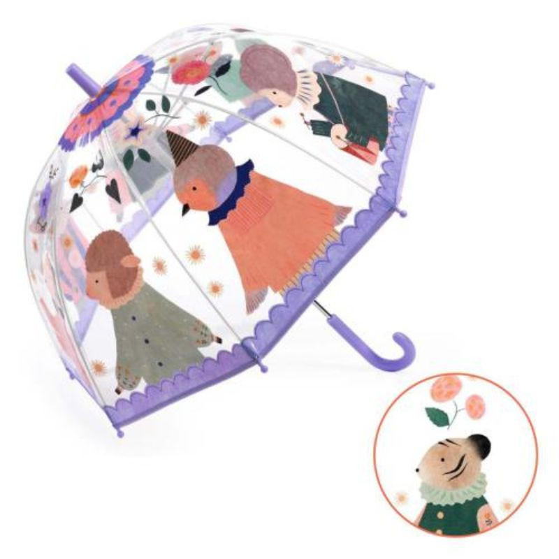 Com o guarda chuva Flores e Pássaros da Djeco o seu mini vai ficar seco e protegido.