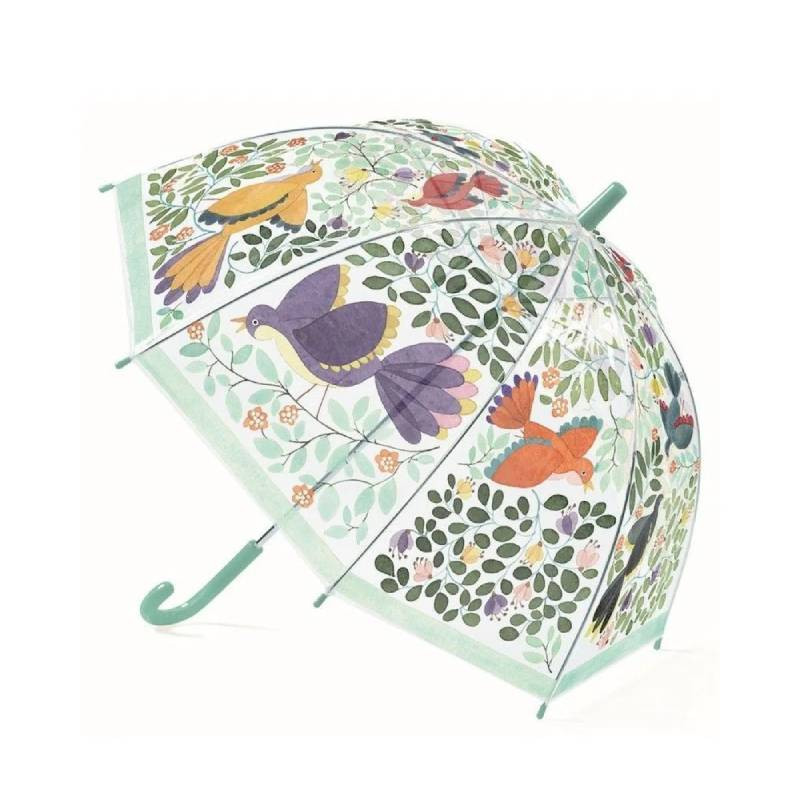 Com o guarda chuva Flores e Pássaros da Djeco o seu mini vai ficar seco e protegido.