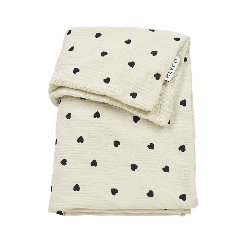 Envolve o teu bebé em doçura! Manta Meyco Baby com padrão Sweet Heart oferece conforto e ternura em cada detalhe.