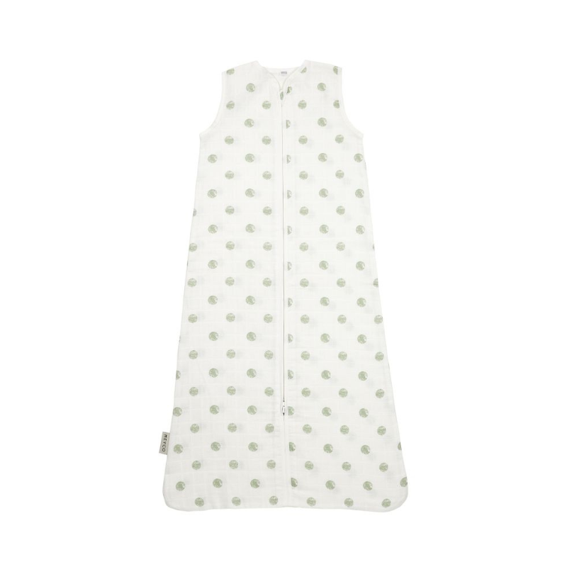 Saco de dormir hidrófilo Meyco Baby com padrão de bolinhas em tom Soft Green. Leve, respirável e ideal para os dias e noites quentes. TOG 0.3. Medida: 90 cm.