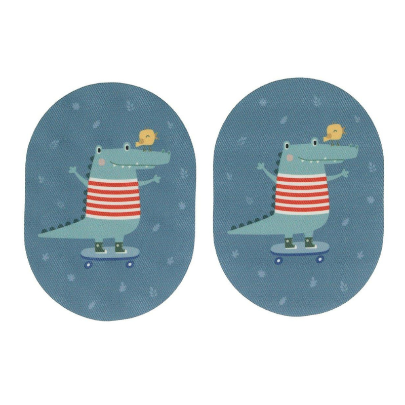 Remendos termocolantes Tutete com design divertido de crocodilo. Ideais para personalizar ou reparar roupa infantil com originalidade. Contém 2 unidades.