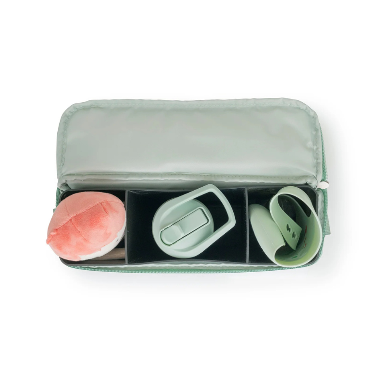 - Armazenamento Integrado: Bolso espaçoso para guardar todos os utensílios de alimentação.