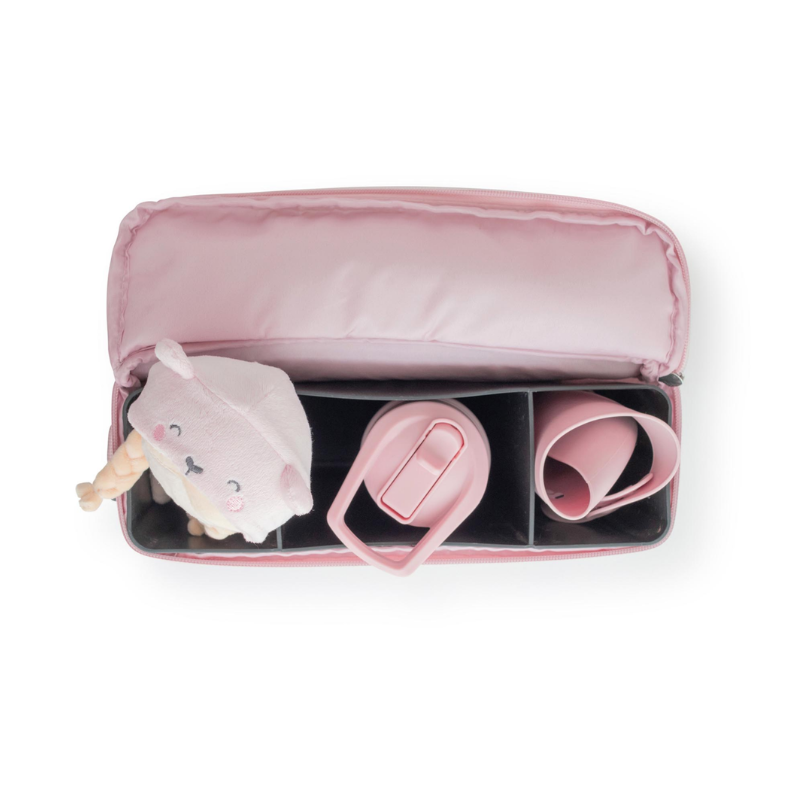 - Armazenamento Integrado: Bolso espaçoso para guardar todos os utensílios de alimentação.