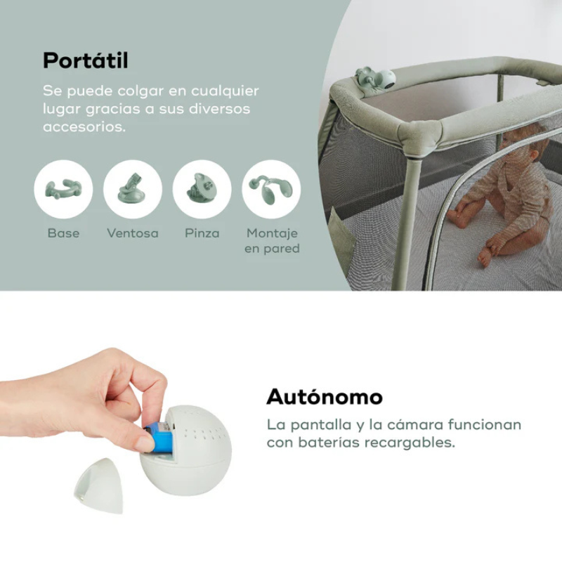 Babymoov Yoo Go+ HD: monitor de vídeo para bebé sem fios. Ecrã HD 5", visão noturna, tecnologia Sleep (ativação por voz). Bateria recarregável, 300m alcance. Inclui 4 acessórios de fixação. Fala com o bebé à distância.
