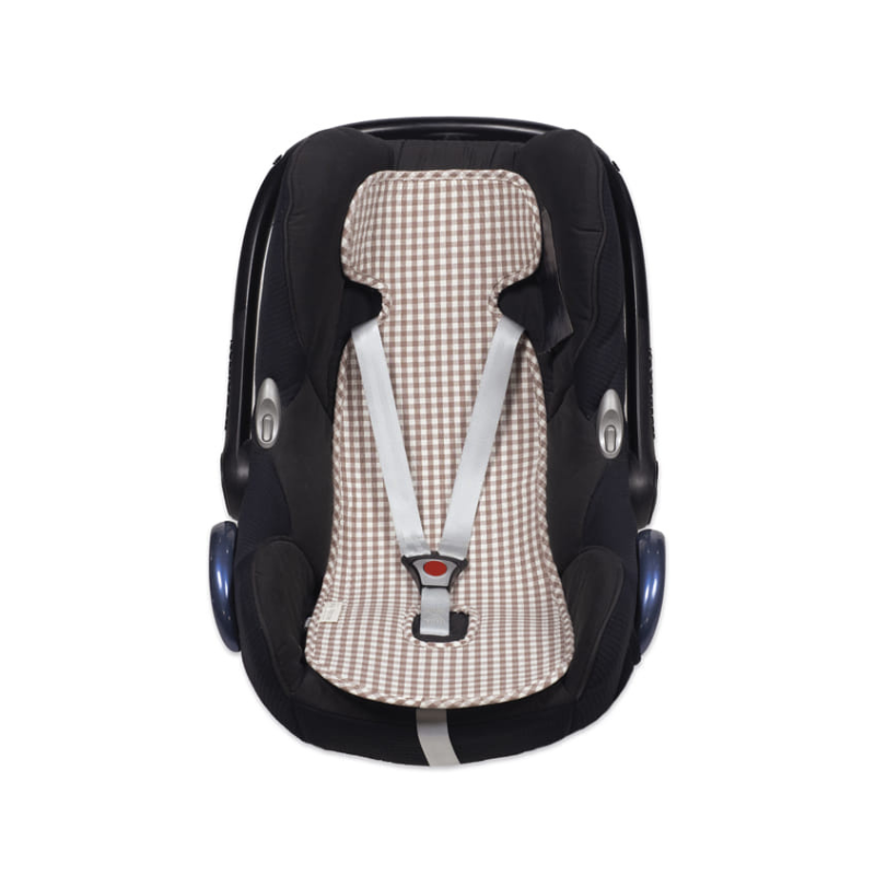 Forra universal para cadeira de carro Walking Mum, respirável e confortável para bebés de 40 a 105 cm. Material seguro, fácil de limpar e design moderno em vichy moka.