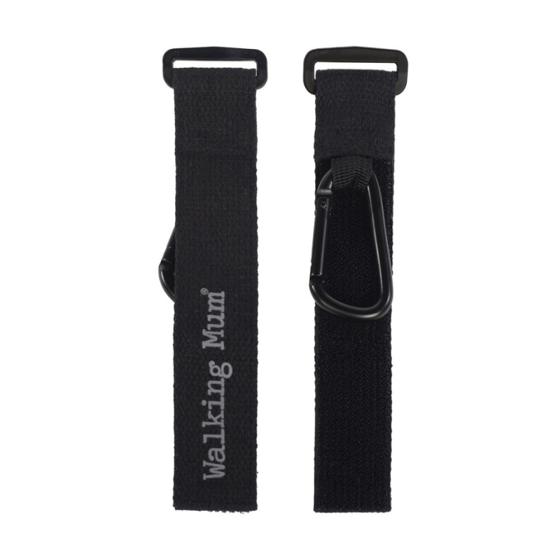 As tiras de velcro permitem fixar os ganchos ao carrinho em segundos, de forma segura e estável.
