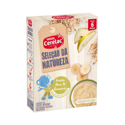 Cerelac Papa Láctea Aveia, Pera e Banana +6M 240g é uma papa infantil para preparar com água, adequada para alimentação de bebés a partir dos 6 meses.