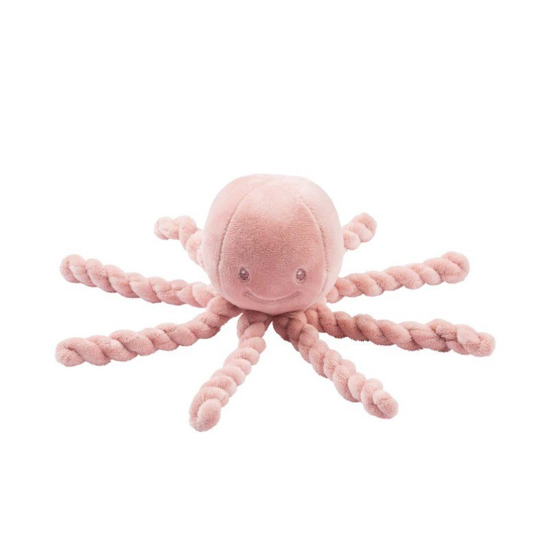 Nattou Lapidou Polvo é um brinquedo suave em formato peluche, adequado desde o nascimento, inclusive bebés prematuros.