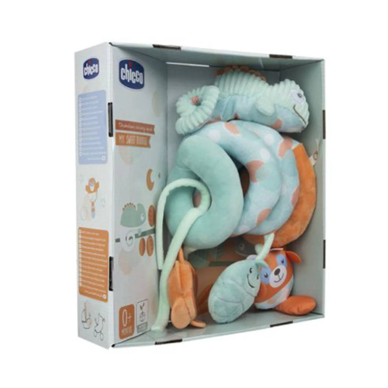 Chicco My Sweet Doudou Espiral Passeio Camaleão +0M é um brinquedo em espiral para colocar no carrinho, que acompanha os bebés durante as suas primeiras descobertas.