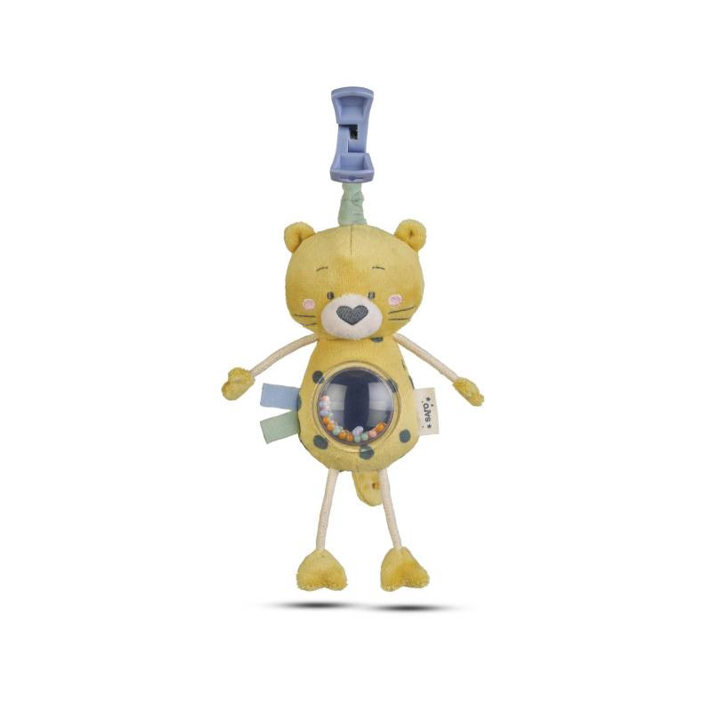 Os passeios serão mais divertidos com a Roca Jungle Party Amarela da Saro, um pequeno peluche macio e fácil de agarrar, que faz barulho quando é abanado.