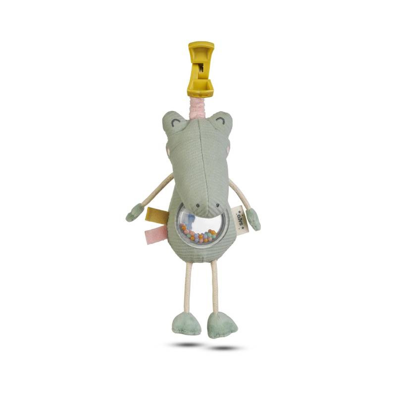 Os passeios serão mais divertidos com a Roca Jungle Party Verde da Saro, um pequeno crocodilo macio e fácil de agarrar, que faz barulho quando é abanado.