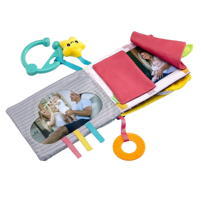 É um brinquedo de estimulação precoce que desperta os sentidos, permitindo ao bebé levar consigo as fotografias das pessoas de quem mais gosta.