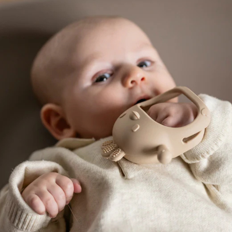 - Superfície texturizada para aliviar a dor da dentição e massagear as gengivas;
