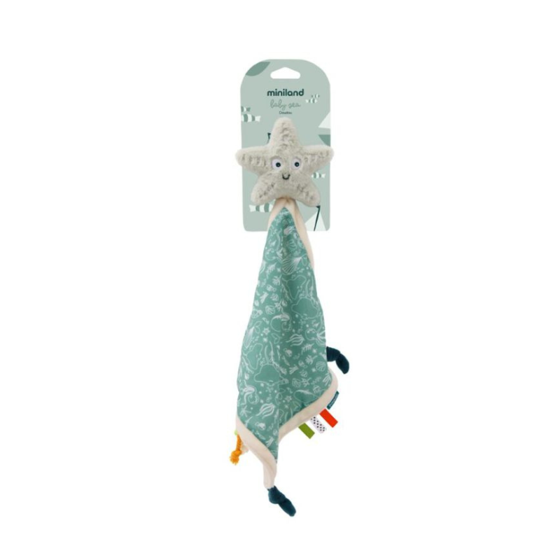 O Baby Sea Doudou da Miniland é muito mais do que um simples brinquedo. É um objeto de transição e apego, carinhosamente desenhado para oferecer ao bebé uma fonte de conforto, segurança e estímulo sensorial desde o nascimento.