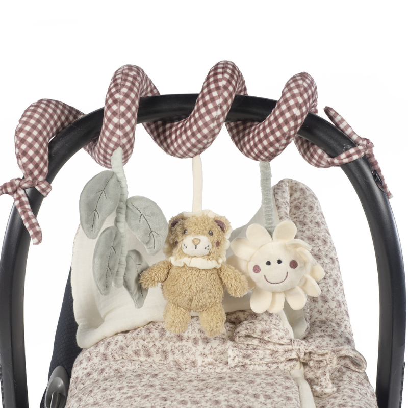 Com um design em espiral fácil de fixar, adapta-se perfeitamente ao carrinho de bebé, berço ou cadeira auto, proporcionando diversão em qualquer lugar.