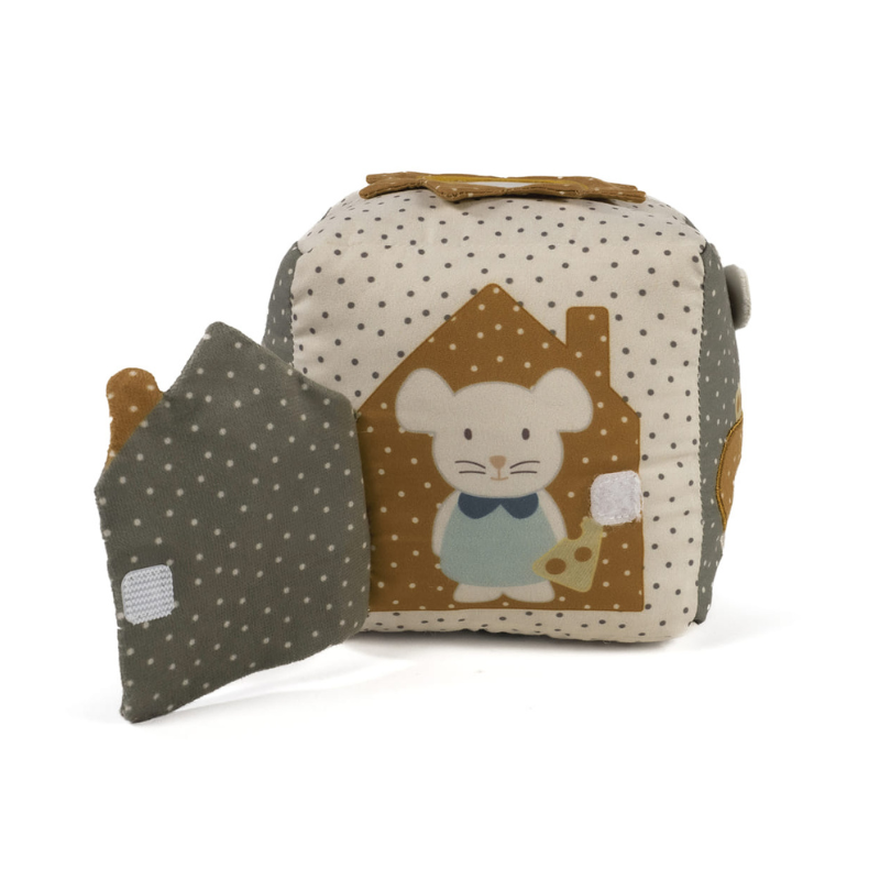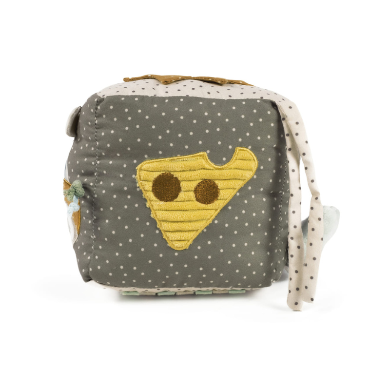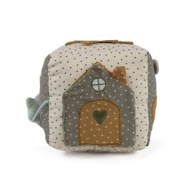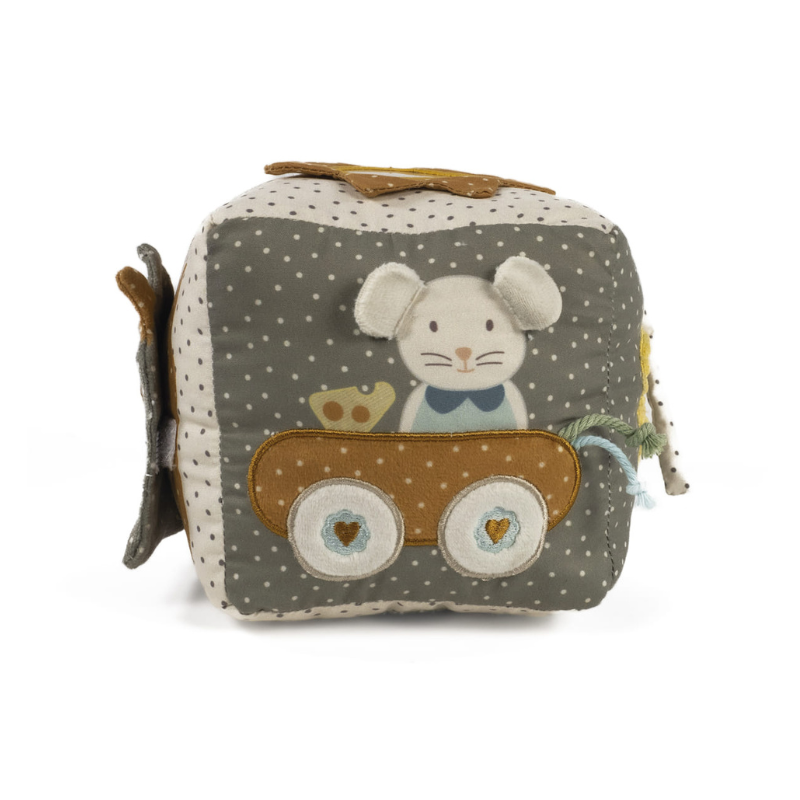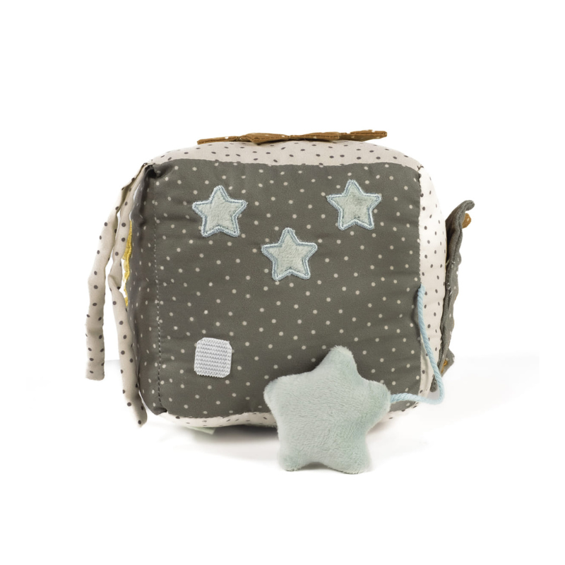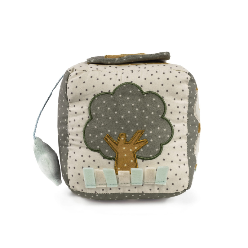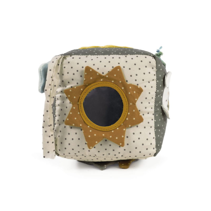 Cada face d cubo oferece uma experiência diferente, com texturas variadas, elementos interativos e cores suaves, que captam a atenção e incentivam a exploração. O seu tamanho compacto é perfeito para as mãos pequenas, sendo leve e fácil de agarrar.