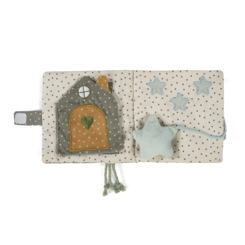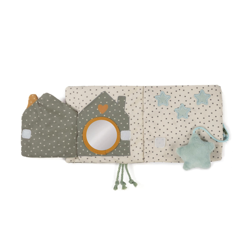 Um pequeno livro, cheio de grandes descobertas para o teu bebé. Livro de tecido sensorial com atividades que estimulam os sentidos e o desenvolvimento do teu bebé.