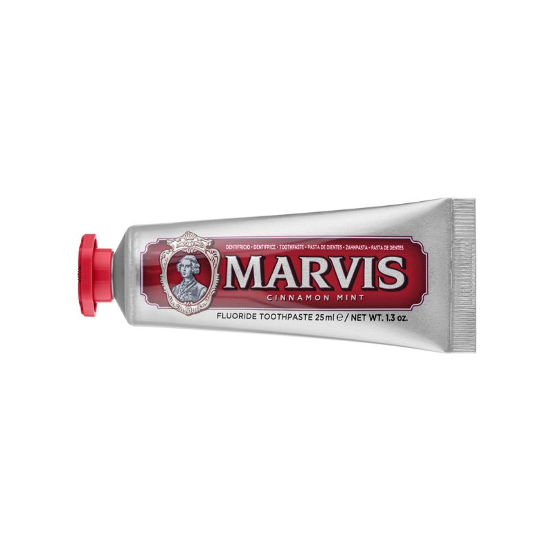 Marvis Cinnamon Mint é uma pasta de dentes rica e cremosa que combina o sabor exótico da canela com a frescura da menta.