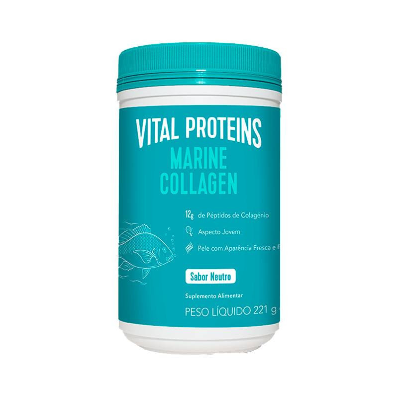 Vital Proteins Collagen Marine Sabor Neutro é um suplemento alimentar que promove a saúde da pele, cabelo, unhas e articulações.
