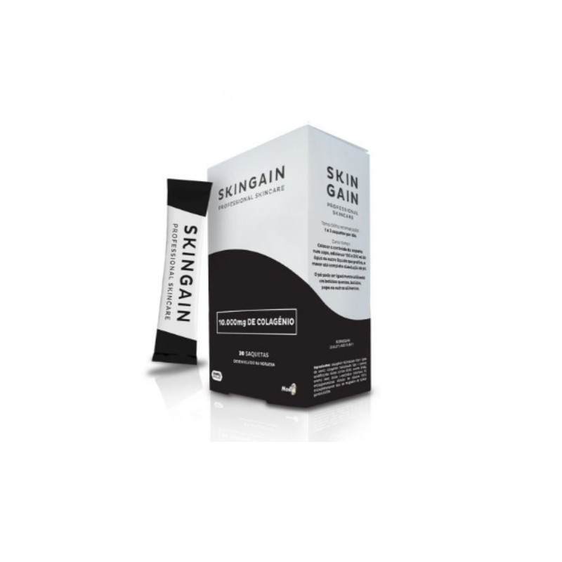 Skingain Pó é um suplemento alimentar especialmente indicado para manter uma pele normal e no normal funcionamento da mesma. Contém uma combinação única de colagénio tipo I e II, vitamina C, A, B2 e Biotina que juntamente com o zinco contribui para a manutenção de uma pele normal e ainda o cobre que participa na manutenção dos tecidos conjuntivos e na normal pigmentação da pele. Não exceder a toma diária recomendada. Não recomendado a menores de 18 anos.