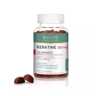 Biocyte Keratine 100mg Gomas x60 é um suplemento alimentar à base de vitaminas, zinco, selénio, extrato vegetal e hidrolisado de queratina que contribuem para a manutenção de um cabelo normal.