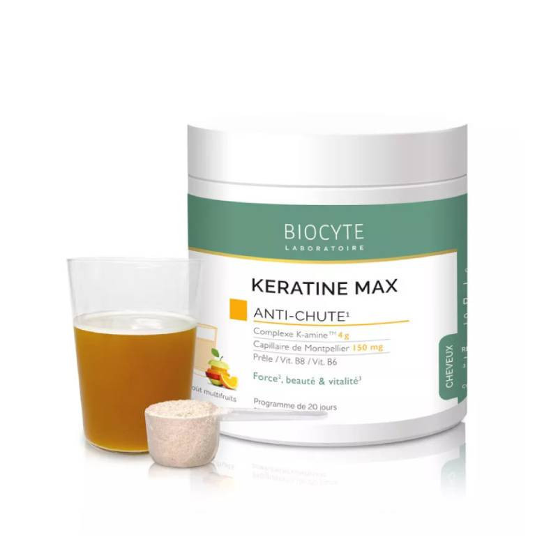 Biocyte Keratine Max Capilar Pó 240g é um suplemento alimentar composto por 95% de Queratina, uma proteína composta por 18 aminoácidos, que lhe confere força e volume, protegendo-a das agressões externas.