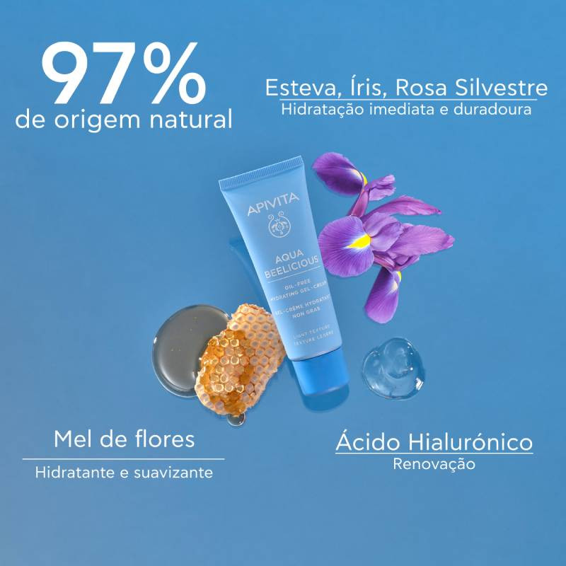 Apivita Aqua Beelicious Gel-Creme Ligeiro 40ml com composição oil-free, indicado para pele mista a oleosa, oferece hidratação e frescura imediata e de longa duração.